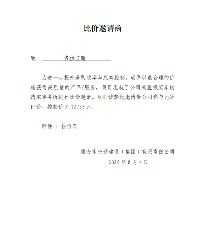 關(guān)于選取處置報(bào)廢車(chē)輛事務(wù)所的比價(jià)邀請(qǐng)函