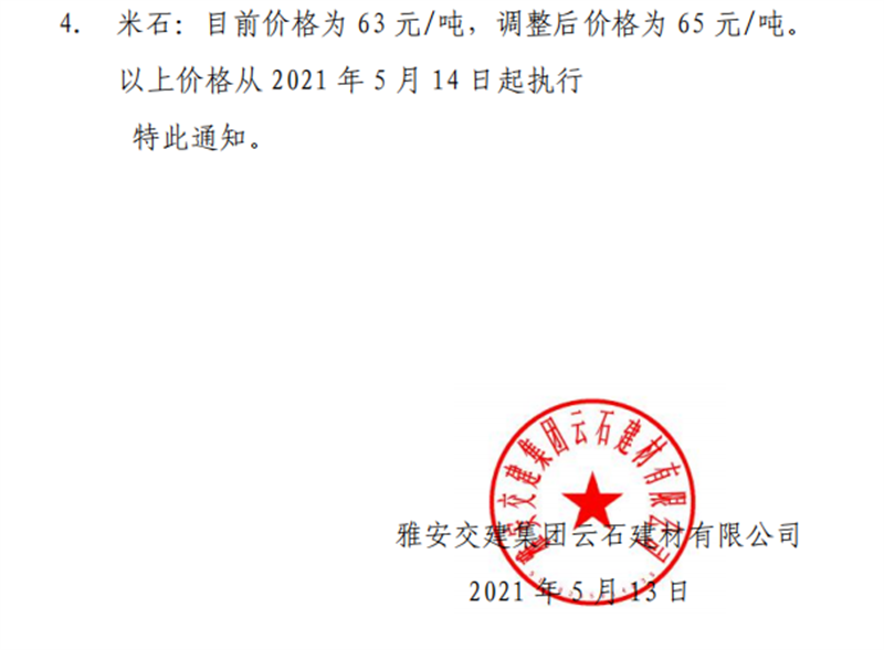 ÑŰ²½»½¨¼¯ˆF(tu¨¢n)ÔÆÊ¯¹«Ë¾É°Ê¯¹ÇÁÏäNÊÛƒr(ji¨¤)¸ñÇé›r±í£¨2021.5.14£©