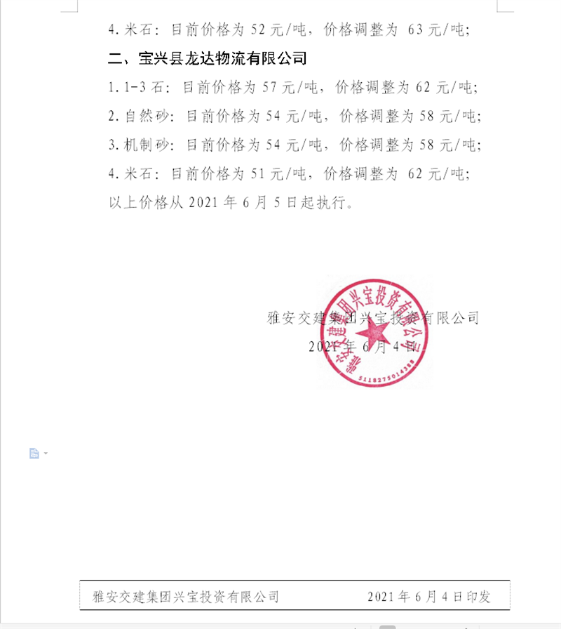 ÑŰ²½»½¨¼¯ˆFÔÆÊ¯¹«Ë¾É°Ê¯¹ÇÁÏäNÊÛƒr¸ñÇé›r±í£¨2021.6.20£©