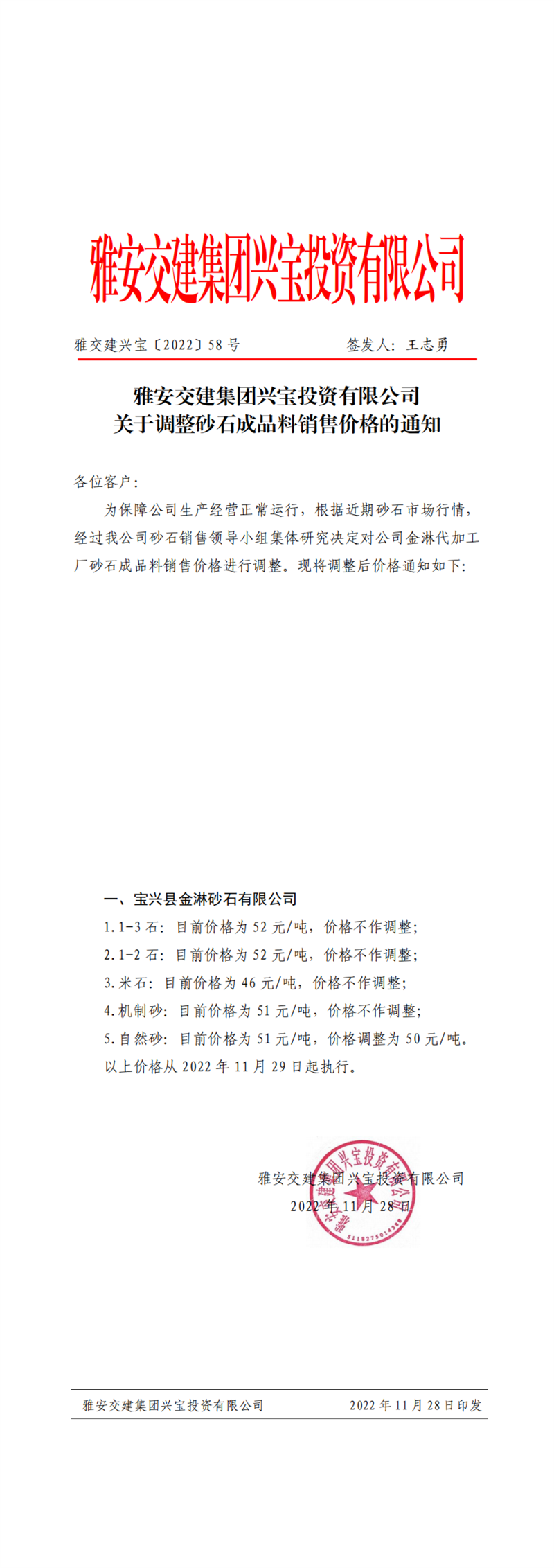 ÑŽ»½¨ÅdŒš¡²2022¡³62Ì– êP(gu¨¡n)ÓÚÕ{(di¨¤o)Õûɰʯ³ÉÆ·ÁÏäNÊÛƒr(ji¨¤)¸ñµÄ֪ͨ£¨2022-12-2£©